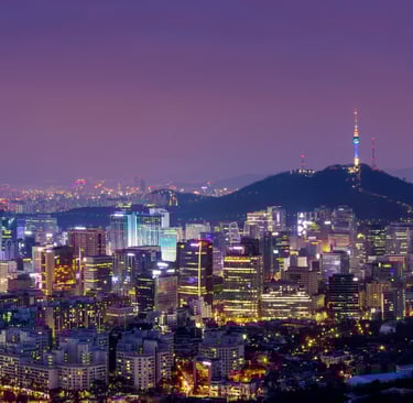 Capital city blending ancient traditions with modern lifestyle. Gyeongbokgung Palace – royal palace of the Joseon Dynasty. Bukchon Hanok Village – traditional Korean houses. N Seoul Tower – panoramic city views. Shopping districts: Myeongdong, Dongdaemun & Insadon. K-Pop culture, street food & nightlife
